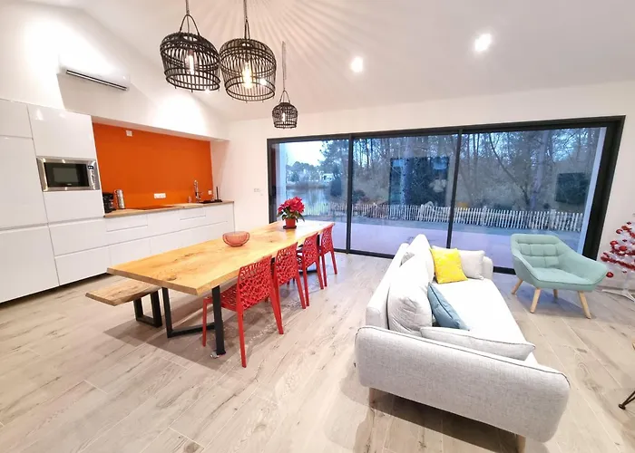 Bénéficiant d'un emplacement à 4 km du parc Dino's Park, Maison design en bord de lac Saint-Jean-de-Monts dispose d'une terrasse avec vue sur le lac. Proposant la location des bicyclettes, la villa vous invite à visiter le Parc aquatique Atlantic Toboggan, situé à 10 minutes en voiture.